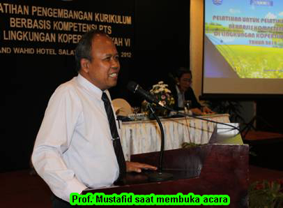 Hal tersebut disampaikan Koordinator Kopertis VI, Prof. Mustafid, saat membuka acara Pelatihan Pengembangan Kurikulum Berbasis Kompetensi, di Hotel Grand Wahid (12-13/4).