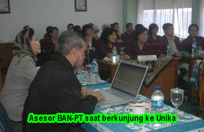 Paparan tersebut disampaikan Prof. Agnes Widanti Soebijanto, dihadapan para Asesor BAN-PT, Prof. Etty R. Agoes dan Dr. H. Moch Ichsan. Kunjungan Asesor BAN-PT selama empat hari (11,14,16 & 17/4) ke Unika Soegijapranata Semarang, dalam rangka visitasi dan evaluasi.