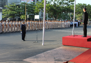 Gubernur Jawa Tengah, Ganjar Pranowo memimpin  jalannya upacara. Tampak hadir beberapa pejabat pemerintahan maupun pejabat di lingkungan Akpelni dan Yayasan Wiyata Dharma selaku badan penyelenggara pendidikan, termasuk Direktur Akpelni Djajari. Usai upacara acara dilanjutkan dengan atraksi liong oleh para taruna, drum corps dan kirab seluruh civitas akademika.