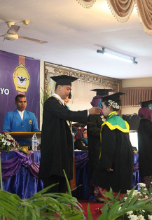 “Kepada wisudawan-wisudawati senantiasalah berdoa, berbakti kepada orang tua, selalu belajar dan mengembangkan kemampuan, serta berbuat baik pada sesama.” pesan Direktur.