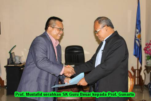 Bendan Nduwur -  Dua dosen PTS masing-masing Dr. H. Gunarto, SH, SE, Akt.M.Hum (Unissula), dan Dr. Harun Joko Prayitno, M.Hum (UMS), diundang Koordinator Kopertis  VI, Prof. Mustafid, untuk menerima SK Guru Besar (GB), di ruang kerjanya (6/3).